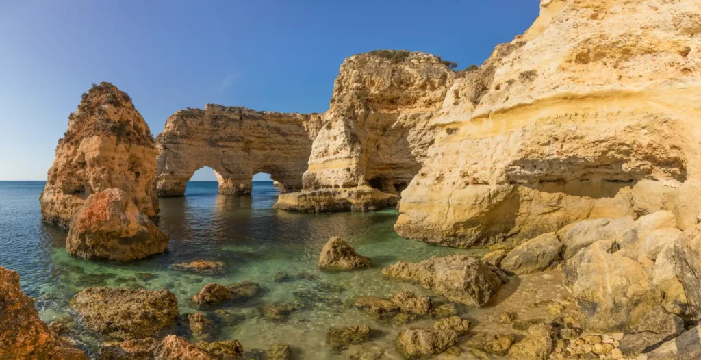 • Praia da Marinha: Known for its iconic limestone cliffs and arches, this beach epitomizes Algarve’s coastal beauty.